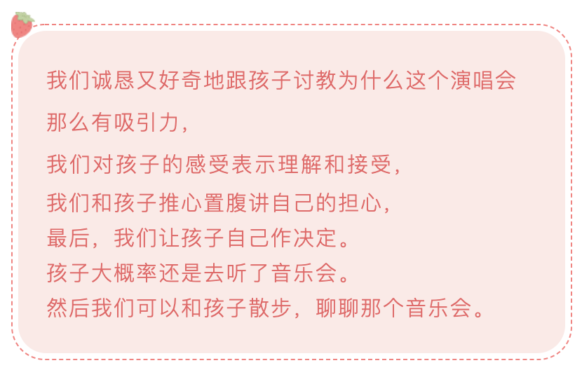 我们的问题不是让不让孩子去演唱会,而是能不能在每件事上与孩子连结,倾听孩子,和孩子有对话,并藉着放手让孩子作决定,来提高孩子的思辨能力。有一种管教,叫放手: